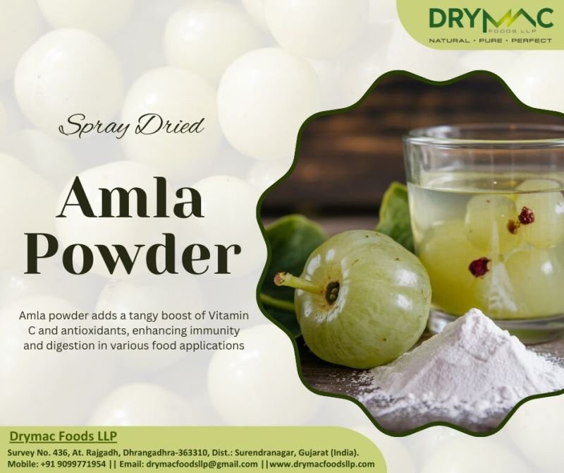 DryMac Foods LLP is engaged in processing and supplying a superlative quality Spray Dried Amla Juice Powder, manufactured from fresh, hand-picked amla fruits using advanced spray drying technology. The process ensures maximum retention of nutrients, natural colour, and authentic sour taste of amla.
