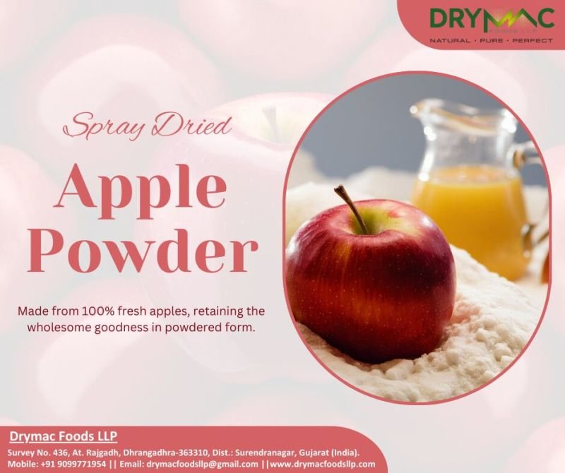 DryMac Foods LLP offers premium quality Spray Dried Apple Powder, produced from fresh, ripe apples using advanced spray drying technology. This gentle drying process helps retain the natural off-white to light cream colour, pleasant apple aroma, authentic fruity taste, and nutritional value of fresh apples in a fine, free-flowing powder.