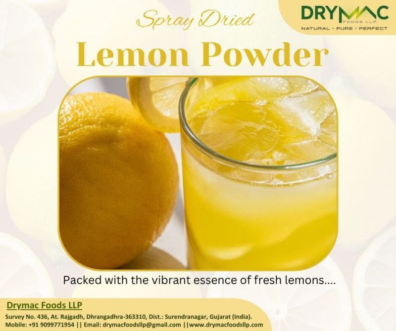 DryMac Foods LLP offers premium-grade Spray Dried Lemon Powder, made from fresh lemons using advanced spray drying technology. Our lemon powder captures the natural tangy flavor, aroma, and nutrition of real lemons — perfect for use in beverages, seasonings, bakery, and health products.