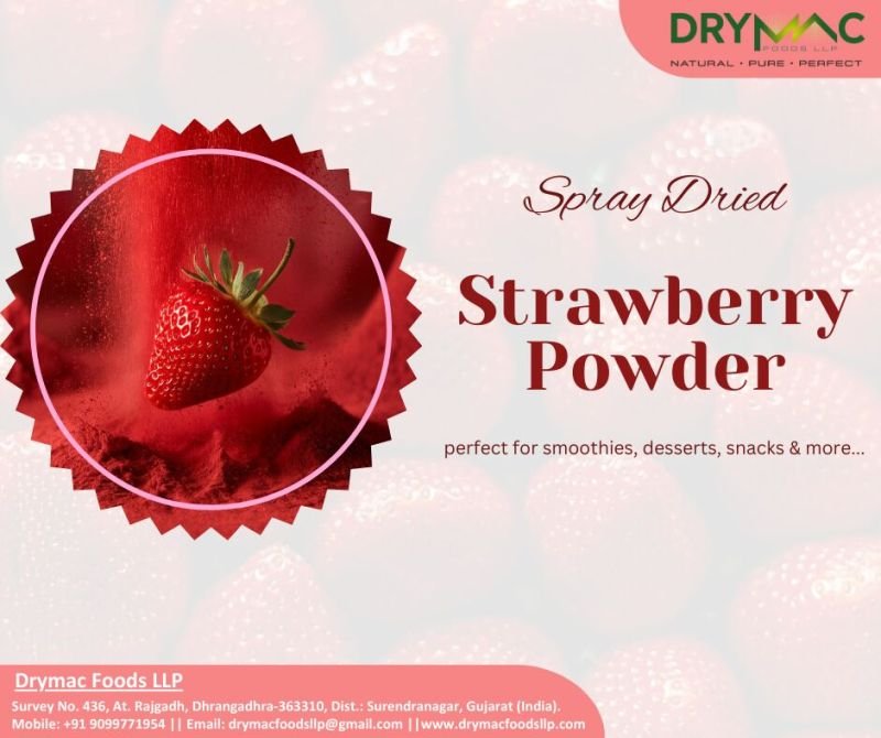 DryMac Foods LLP offers premium quality Spray Dried Strawberry Powder, produced from fresh, ripe strawberries using advanced spray drying technology. Strawberry is often referred to as the “Queen of Fruits” due to its rich nutritional value and multiple health benefits.