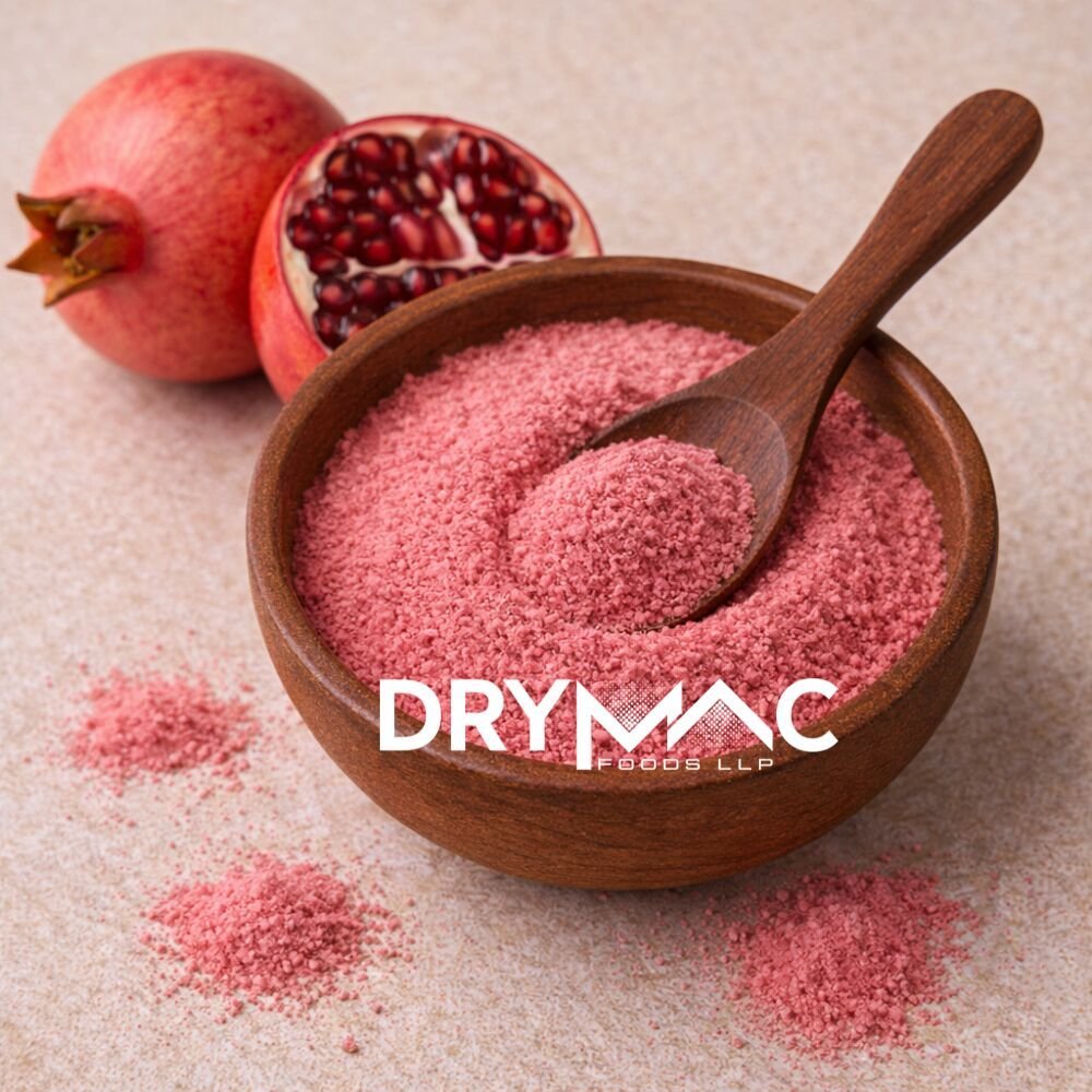 DryMac Foods LLP offers premium quality Spray Dried Pomegranate Powder, produced from fresh, ripe pomegranates using advanced spray drying technology. This process helps retain the fruit’s natural colour, flavour, aroma, and nutritional properties, especially its rich antioxidant content.